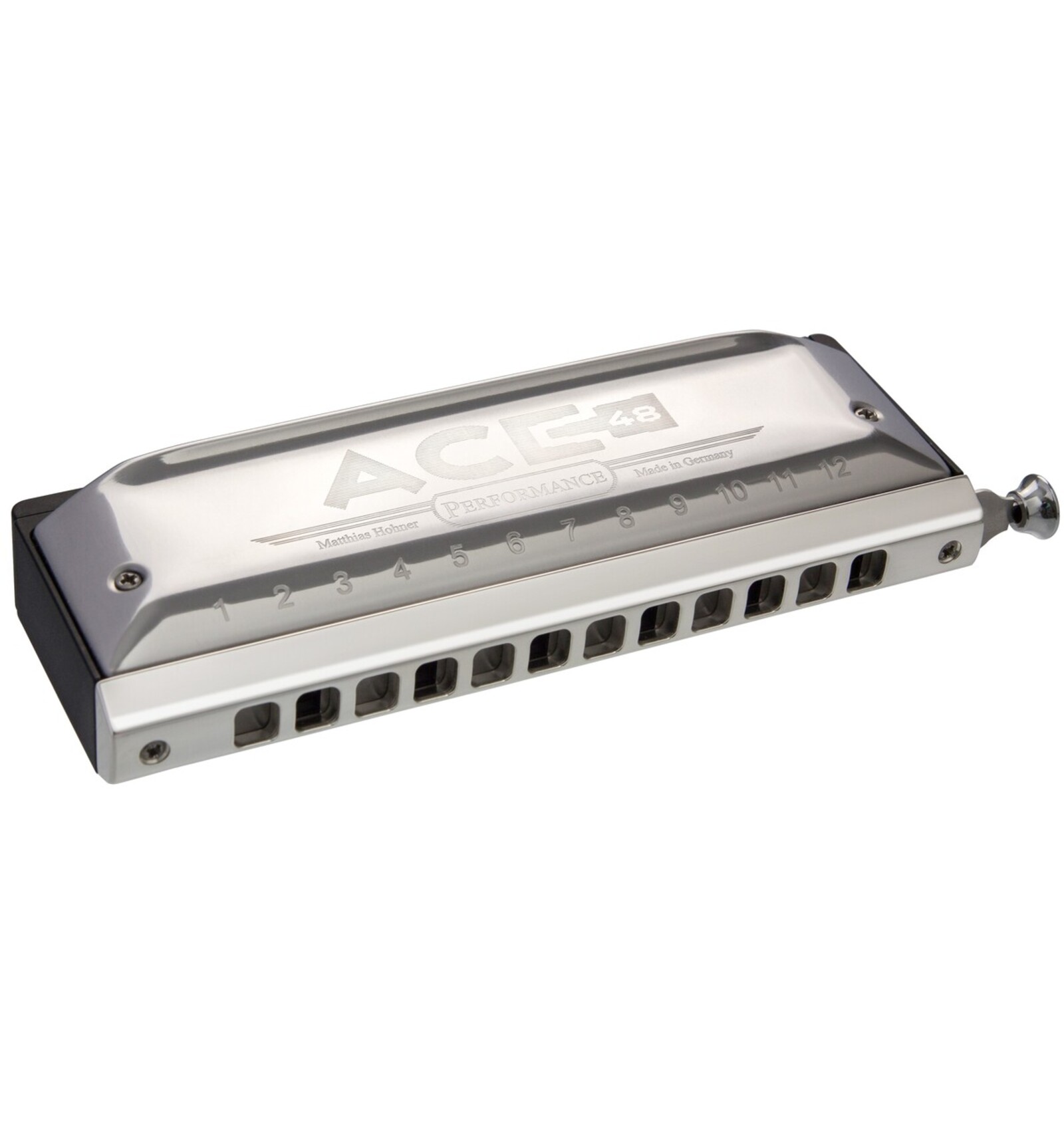 ARMÓNICA CROMÁTICA Nuevo modelo desarrollado en colaboración con losartistas internacionales Hohner más importantes. Incorpora el nuevo diseño Acoustic Coupling Elements (ACE) y el sistema VarioSpring que permite ahjustar la presión del botón al gusto de caña intérprete mediante un práctico tornillo exterior.