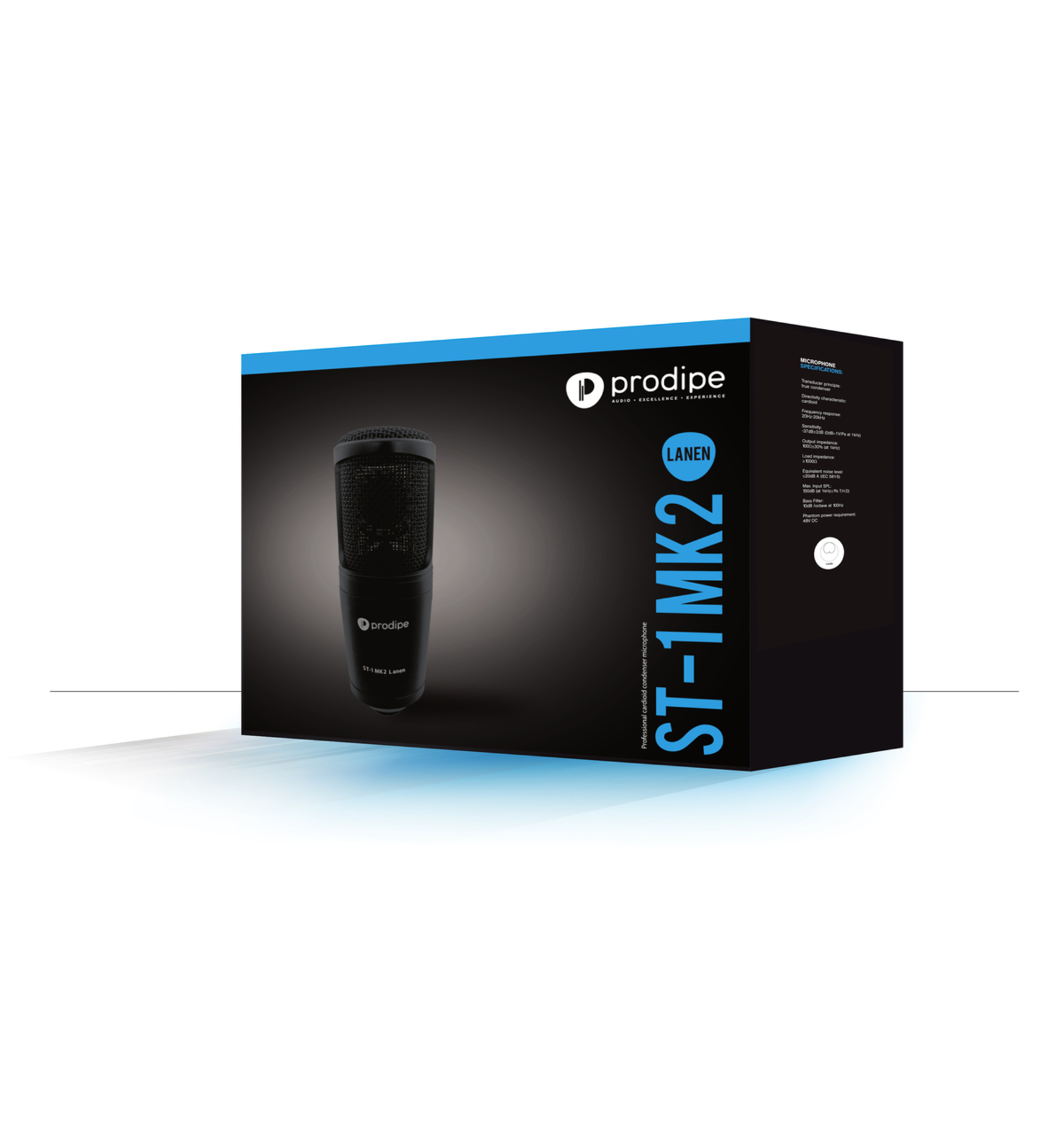 ST1MK2 PRODIPE ST-1 MK2 Micrófono Condensador. Unidireccional. Sensibilidad: -37dB±2dB (0dB=1V/Pa at 1kHz). Frecuencia: 20Hz-20kHz. Impedancia de salida: 100 Ω ±30% (at 1kHz). Impedancía de entrada: e1000 Ω. Phantom 48V DC.