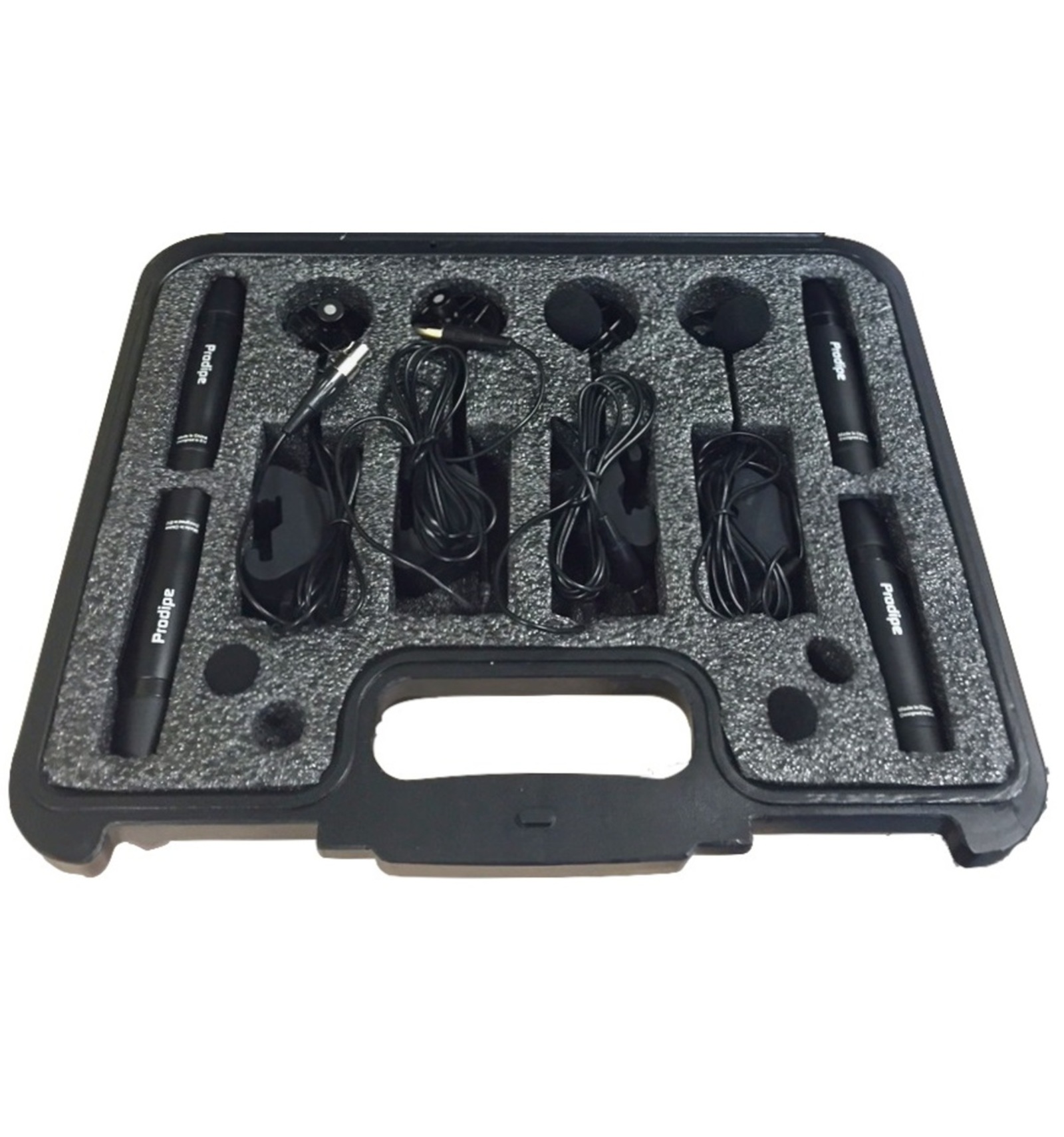 DL21 MICRÓFONOS PRODIPE PARA BATERÍA Juego de 4 micrófonos para batería. Estuche rígido. Sonido natural. Nivel de ganancia acústica alto (140dB). Bajo nivel de acople. Adaptador mini XLR / XLR. Con pinza de goma que aisla las vibraciones del instrumento. Cuello de cisne adaptable para su ubicación. Para configuraciones acústicas. Para sistemas inalámbricos con Phantom. Tambien conexión directa a amplificador con Phantom o mesa con Phantom.