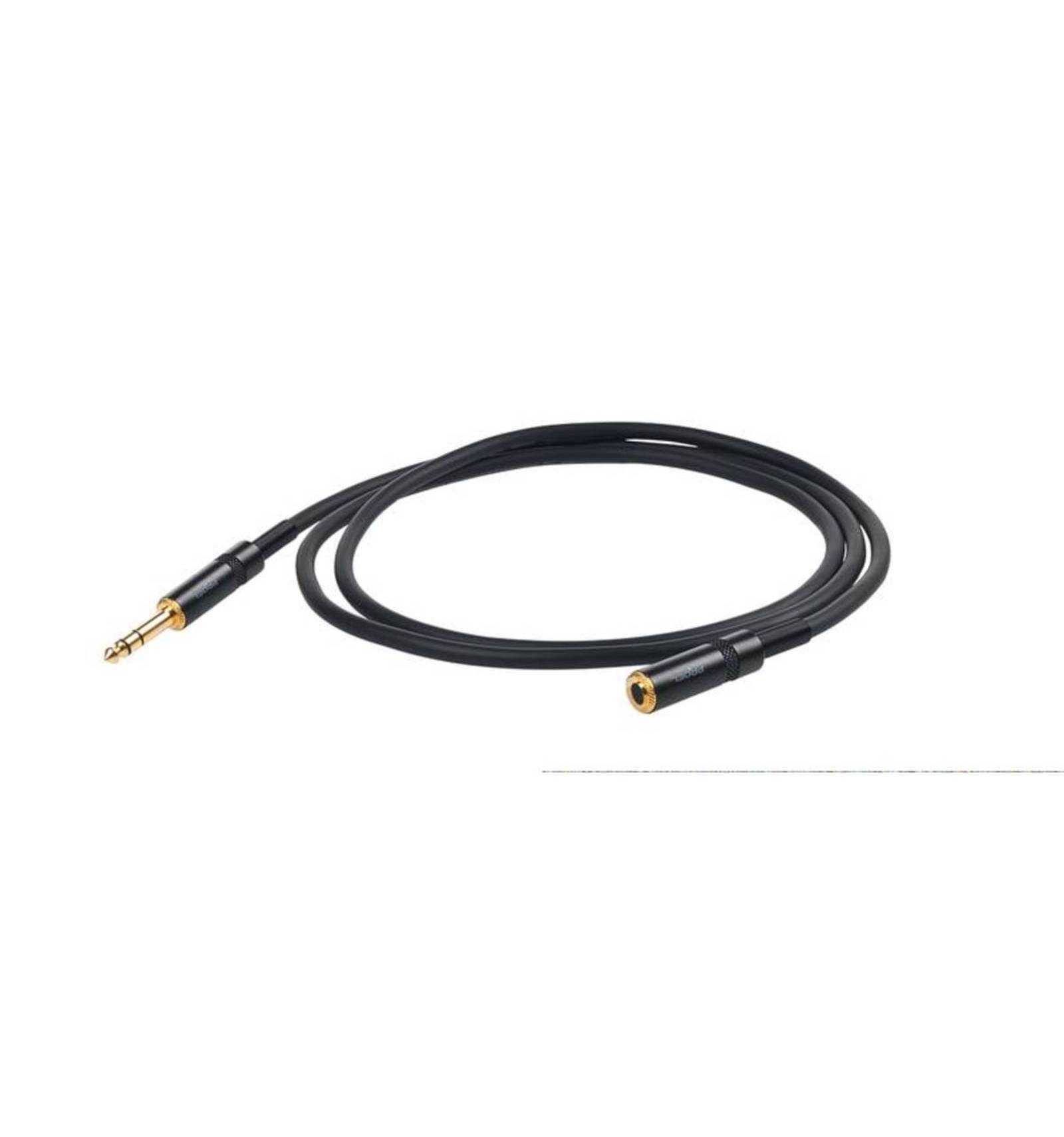 CABLE BALANCEADO Cable Proel CHLP190LU3. Cable de extensión instrumento profesional con conectores metálicos YongShen negros con pin dorado jack estéreo - jack hembraestéreo 3m
