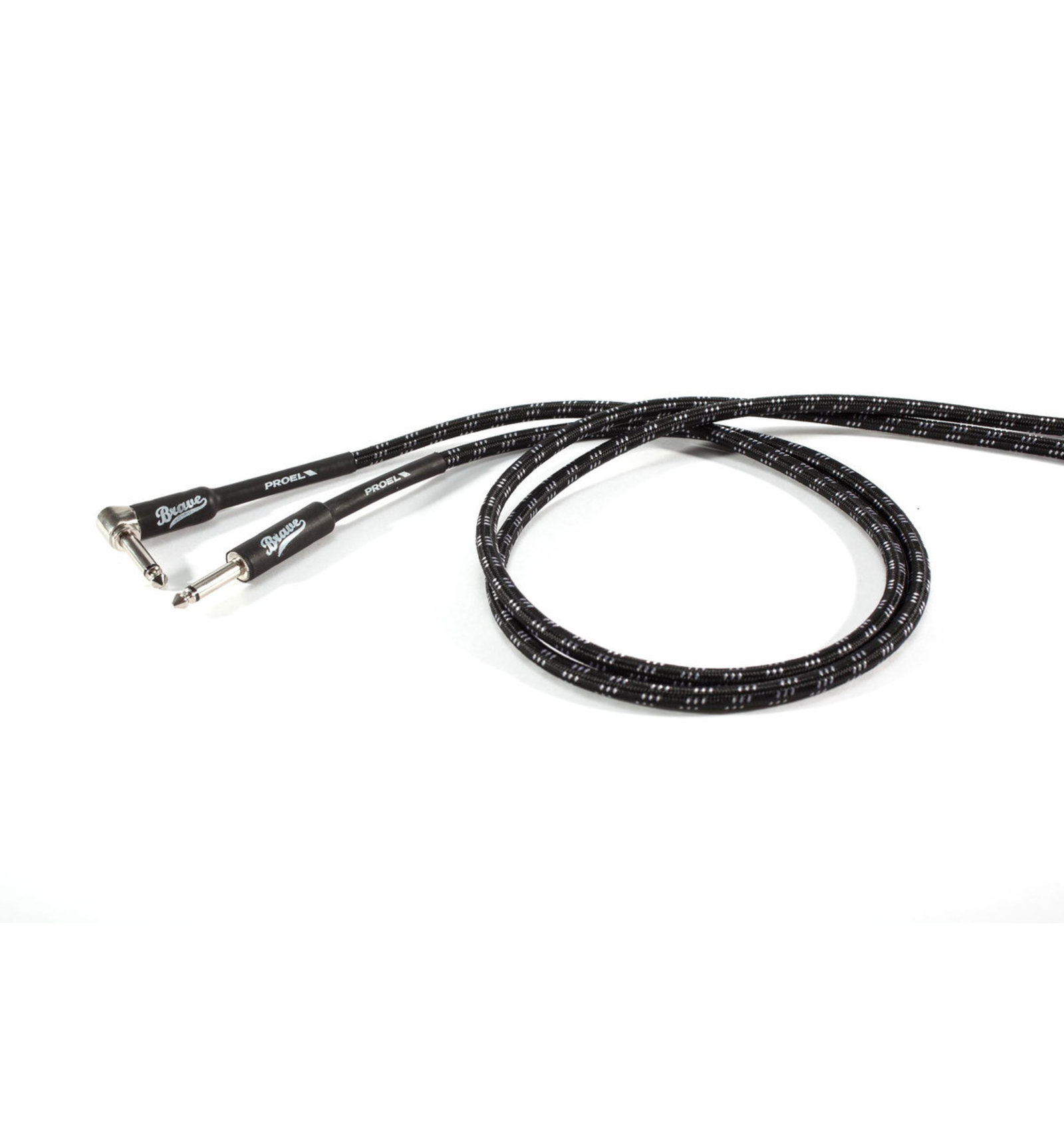 CABLE DE INSTRUMENTO Cable de instrumento Proel Brave BRV120LU3BW. Conectores jack - jack acodado. Cable de PVC flexiblecon cubierta de algodón acabado color negro/ blanco, diámetro 7mm. Longitud 3m.