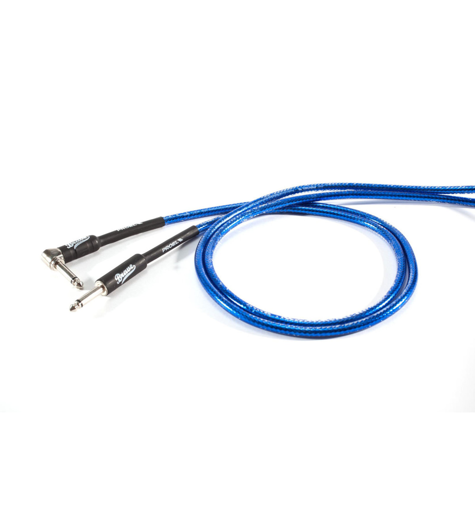 CABLE DE INSTRUMENTO Cable de instrumento Proel Brave BRV120LU3TB. Conectores jack - jack acodado. Cable de PVC flexibletransparente azul, diámetro 7mm. Longitud 3m.