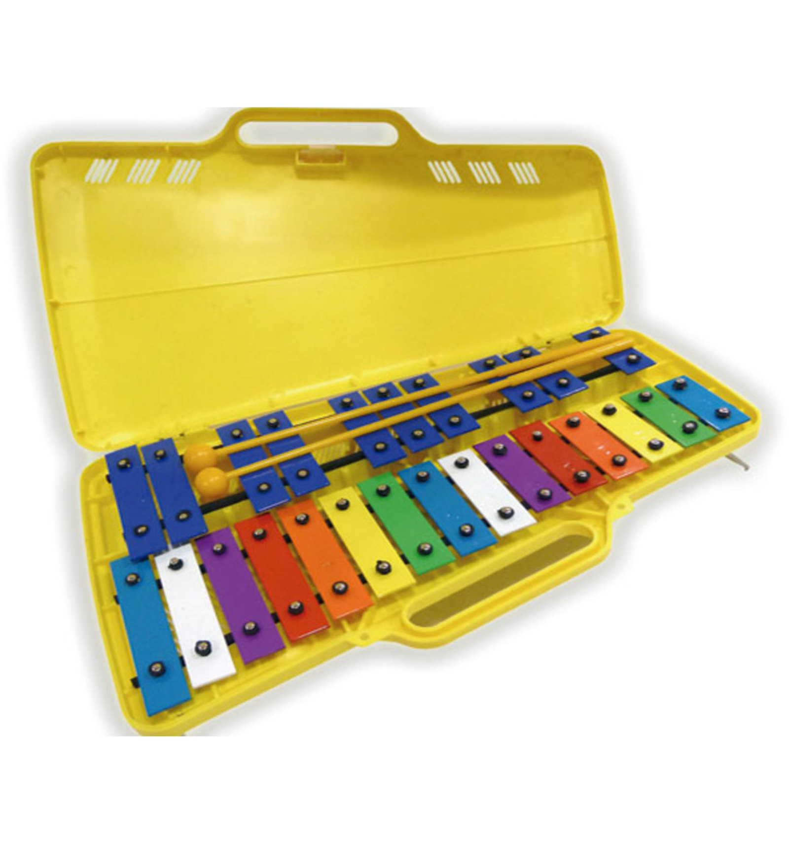 CARRILLÓN CROMÁTICO Carrillón cromático infantil. Laminas de colores para diferenciar alteraciones y un mejor aprendizaje de las notas. Incluye maletín de plástico de transporte con ranura para resonancia.