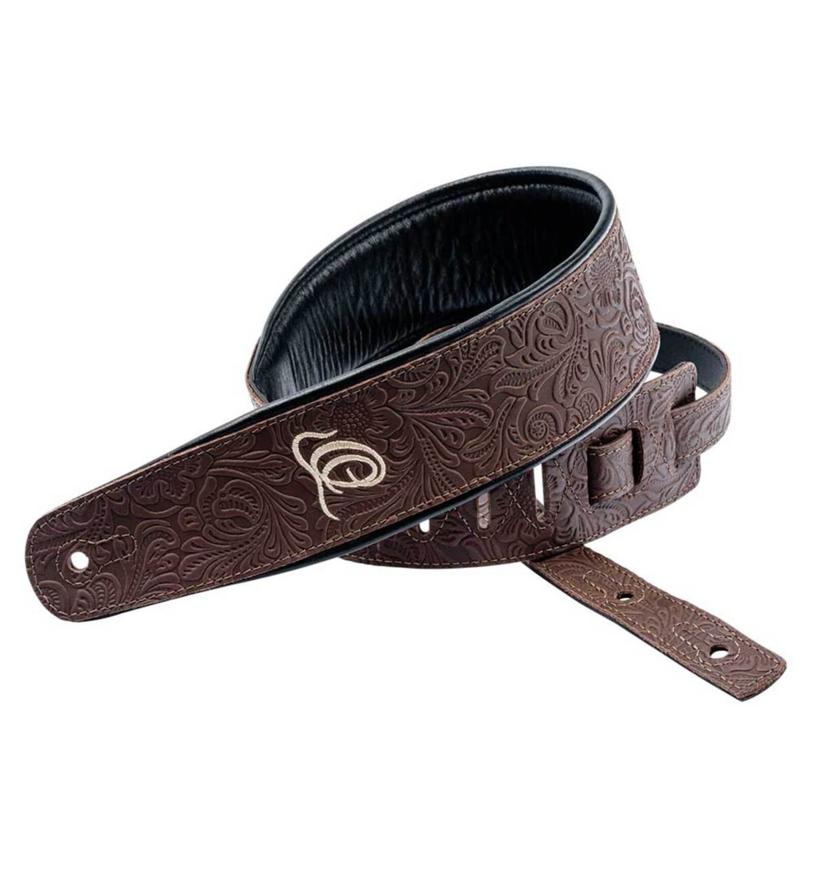 CORREA DE GUITARRA / BAJO Las nuevas correas de cuero genuino de Ortega están hechas a mano en Brasil y ofrecen una excelente apariencia. Gracias al acolchado grueso, su experiencia de juego será más cómoda, incluso durante largas sesiones de práctica y estudio, y presentaciones en vivo. Estos hermosos diseños son absolutamente llamativos.