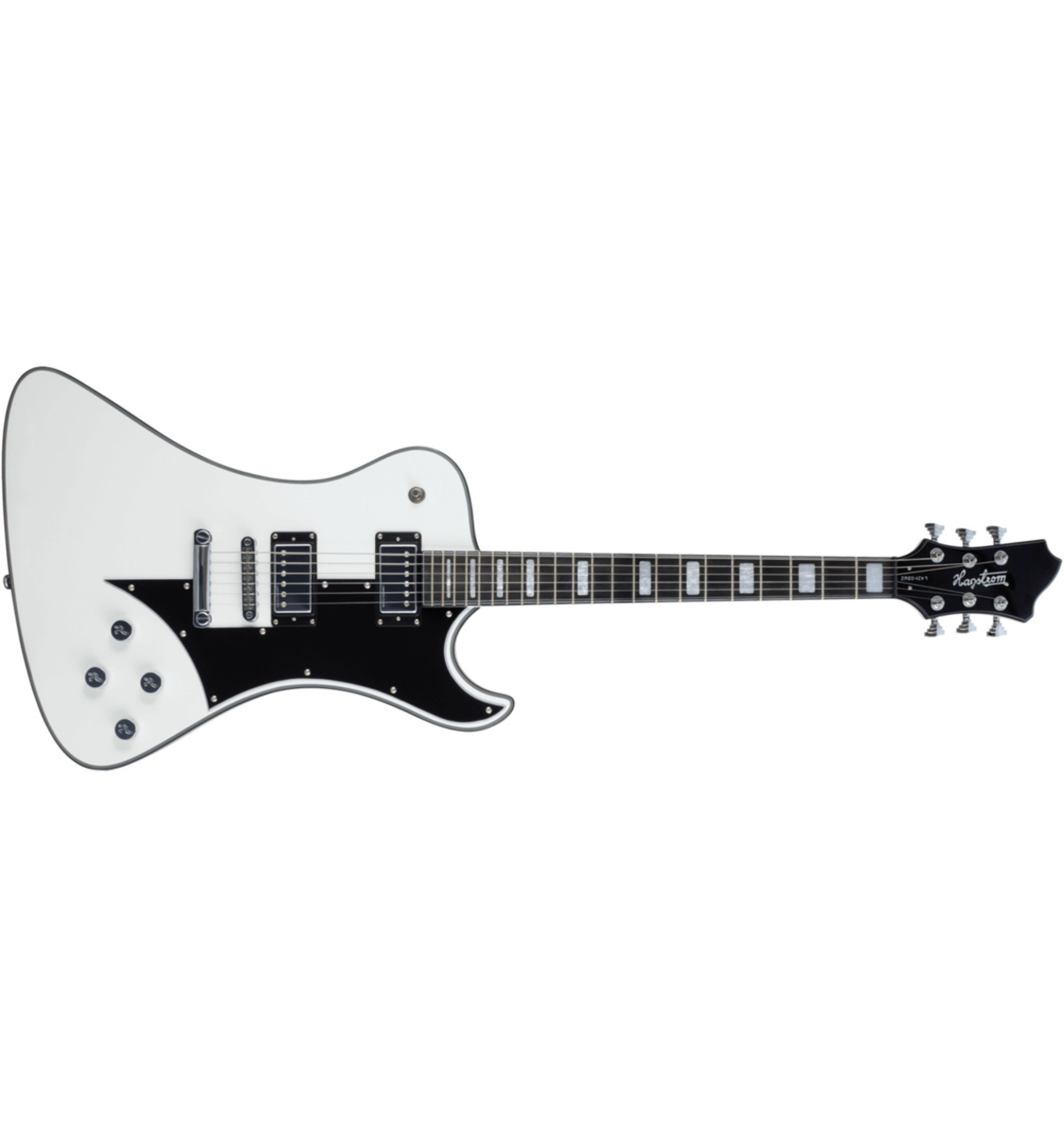 GUITARRA ELÉCTRICA METAL 'Fantomen, White Gloss. Mahogany-Set Neck and body. Long Throw T-O-M,, Stop Tailpiece. 2 x Lundgren Design Humbucker - No. 2 Neck Alnico 2, No. 5 Bridge Alnico 5, 2 x Vol RC-Circuit, 2 x Tone (Push/Pulls - Coil Split), 24.75'' scale length, H-Expander Truss Rod, 18:1 Hagstrom Tuners, Resinator Fretboard'