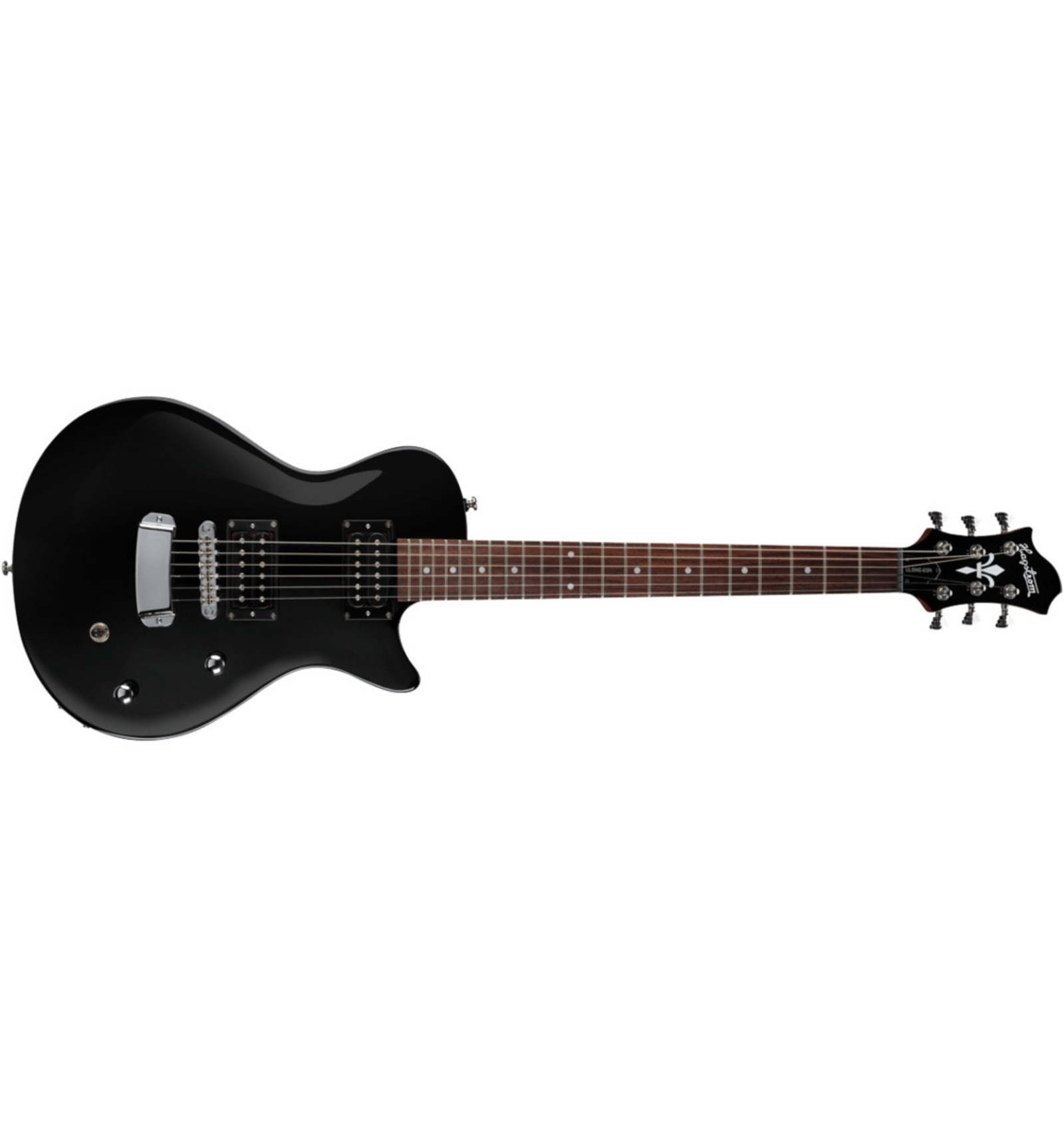 GUITARRA ELÉCTRICA SINGLE CUT Ultra Swede - ESN - Black Gloss. Cuerpo de caoba, mástil de arce atornillado (Bolt-on), diapasón de jatoba tostado. Puente Tune-O-Matic Long Throw, Hagstrom Sustain Blocks. Alma H-Expander. Pastillas: 2 x Custom 62 Ceramic. Selector de 3 posiciones. Potis: 1 x Vol RC-Circuit, 1 x Tone. Escala de 24.75''. Clavijeros Hagstrom 15:1. Acabado negro brillo (Black Gloss).