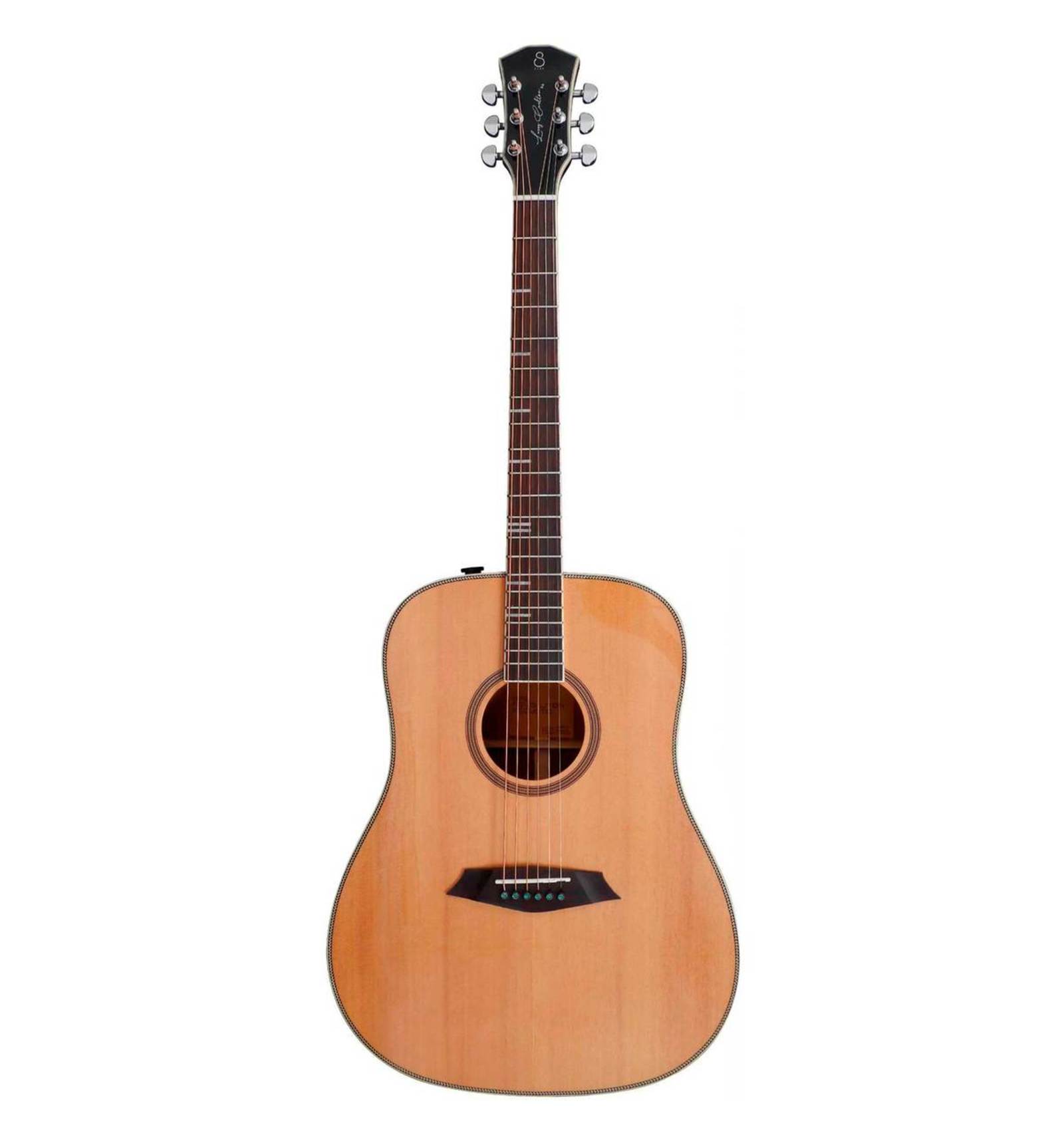 GUITARRA ELECTROACUSTICA DE 6 CUERDAS Guitarra acústica Larry Carlton tipo Dreadnought con previo Sire SIB Acoustic EQ System. Tapa maciza de abeto tostado. Aros de caoba y fondo de caoba maciza para mayor resonancia en graves, proyección y riqueza en frecuencias medias. Diapasón y puente de palosanto. Mástil de caoba. Tres controles para el ajuste de sonido, con perforación mínima en el aro de la guitarra. Pastilla Piezo en el puente y Mic de Condenser interno. Opción de mezcla para mayor dinámica y combinación de sonidos. Controles: Master Volume, Tono, Mic Mix. Clavijeros Sire Acoustic Diecasting Standard.