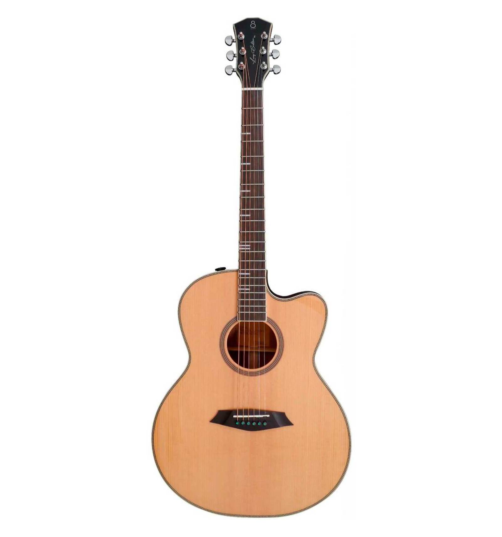 GUITARRA ELECTROACUSTICA DE 6 CUERDAS CON CUTAWAY Guitarra acústica Larry Carlton tipo Grand Auditorium con previo Sire SIB Acoustic EQ System. Tapa maciza de abeto tostado. Aros de caoba y fondo de caoba maciza para mayor resonancia en graves, proyección y riqueza en frecuencias medias. Diapasón y puente de palosanto. Mástil de caoba. Tres controles para el ajuste de sonido, con perforación mínima en el aro de la guitarra. Pastilla Piezo en el puente y Mic de Condenser interno. Opción de mezcla para mayor dinámica y combinación de sonidos. Controles: Master Volume, Tono, Mic Mix. Clavijeros Sire Acoustic Diecasting Standard.