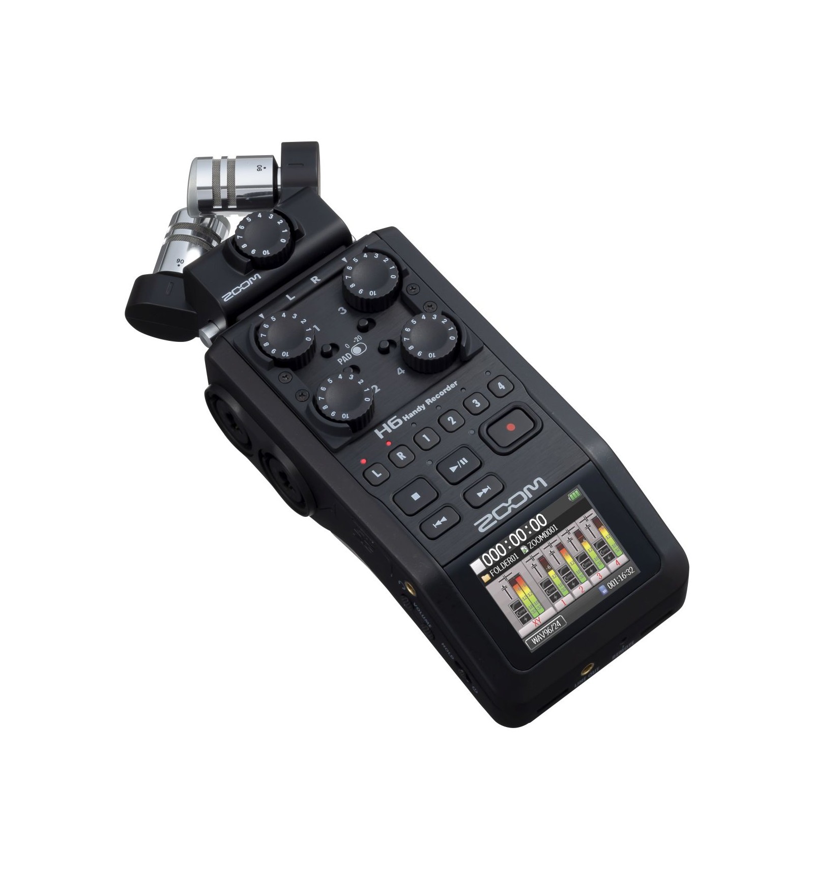 Cápsulas de entrada intercambiables Grabación simultánea de seis pistas Cuatro entradas de micro/línea sobre conectores combo XLR/TRS Controles de ganancia (knobs reales) y atenuadores (pads) de -20dB para cada entrada La cápsula X/Y XYH-6 suministrada proporciona una entrada secundaria a través de un miniconector phono estéreo de ⅛" Mic/Line In. Alimentación Phantom en todas las entradas principales: +12/+24/+48V Gran pantalla LCD inclinada, a todo color Graba directamente a tarjetas SD, SDHC y SDXC de hasta 128GB Soporta formatos de audio de hasta 24-bit /96kHz del tipo WAV conforme-con-BWF o distintos tipos de MP3 Las funciones Auto-record, Pre-record y Backup-record le garantizan que nunca perderá esa toma perfecta Efectos incorporados, incluyendo filtrado de atenuación de graves, compresión y limitación Interfaz de audio USB multicanal y estéreo para PC/Mac/iPad Acepta pilas alcalinas AA estándar o NiMH recargables Más de 20 horas de autonomía con 4 pilas alcalinas AA