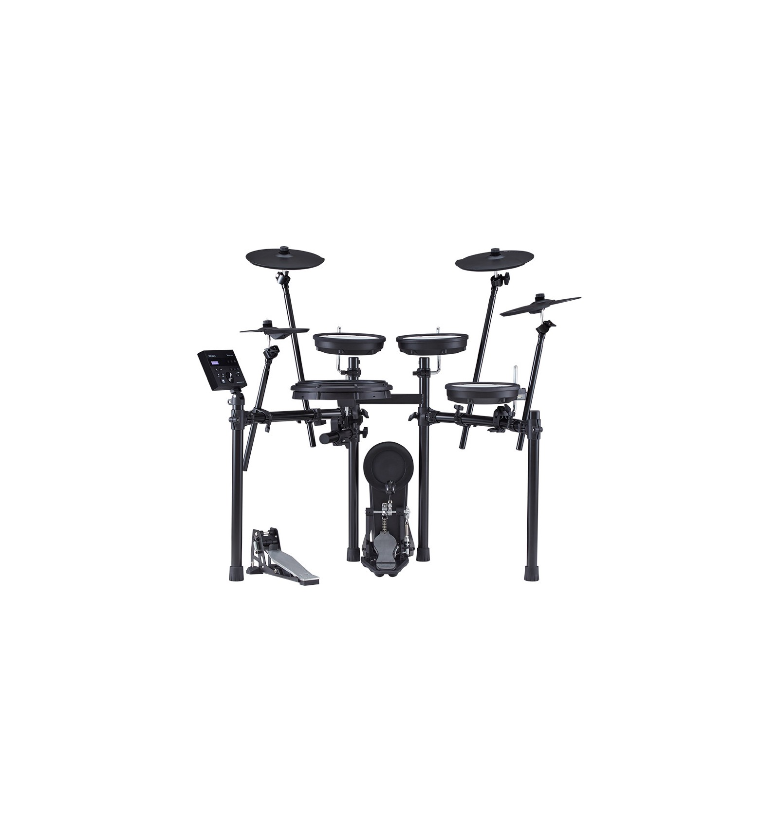Módulo TD-07 con 25 kits preset, 25 kits de usuario y 143 instrumentos V-Edit, EQ, ambiente y 30 multiefectos ofrecen herramientas de edición avanzada para crear tus sonidos de percusión perfectos Pads de caja y toms con los míticos parches de malla de doble capa y tensión ajustable de Roland Un pad de caja de 12 pulgadas PDX-12 con zonas de parche y aro independientes para asignar distintos sonidos y tres pads de tom de zona única de 8 pulgadas PDX-8 El pad de bombo KD-10 ofrece rebote y sensaciones de maza realistas, al tiempo que minimiza el ruido y la vibración Tres platos de crash de 12 pulgadas CY-8 y ride con función de silencio Platos de charles de 10 pulgadas CY-5 y pedal integrado, con control incremental de precisión entre posiciones de abierto y cerrado Soporte de rack de cuatro postes con construcción metálica y agarraderas resistentes para un acople fuerte La conexión Bluetooth integrada te permite recibir señal inalámbricamente desde smartphones, tabletas y otros equipos Bluetooth y enviar datos MIDI a apps musicales Metrónomo integrado avanzado con ajuste de compás, valor de nota y sonido de claqueta Función didáctica integrada con herramientas interactivas para trabajar el tempo y controlar el progreso USB para grabar audio y MIDI en software musical de ordenador