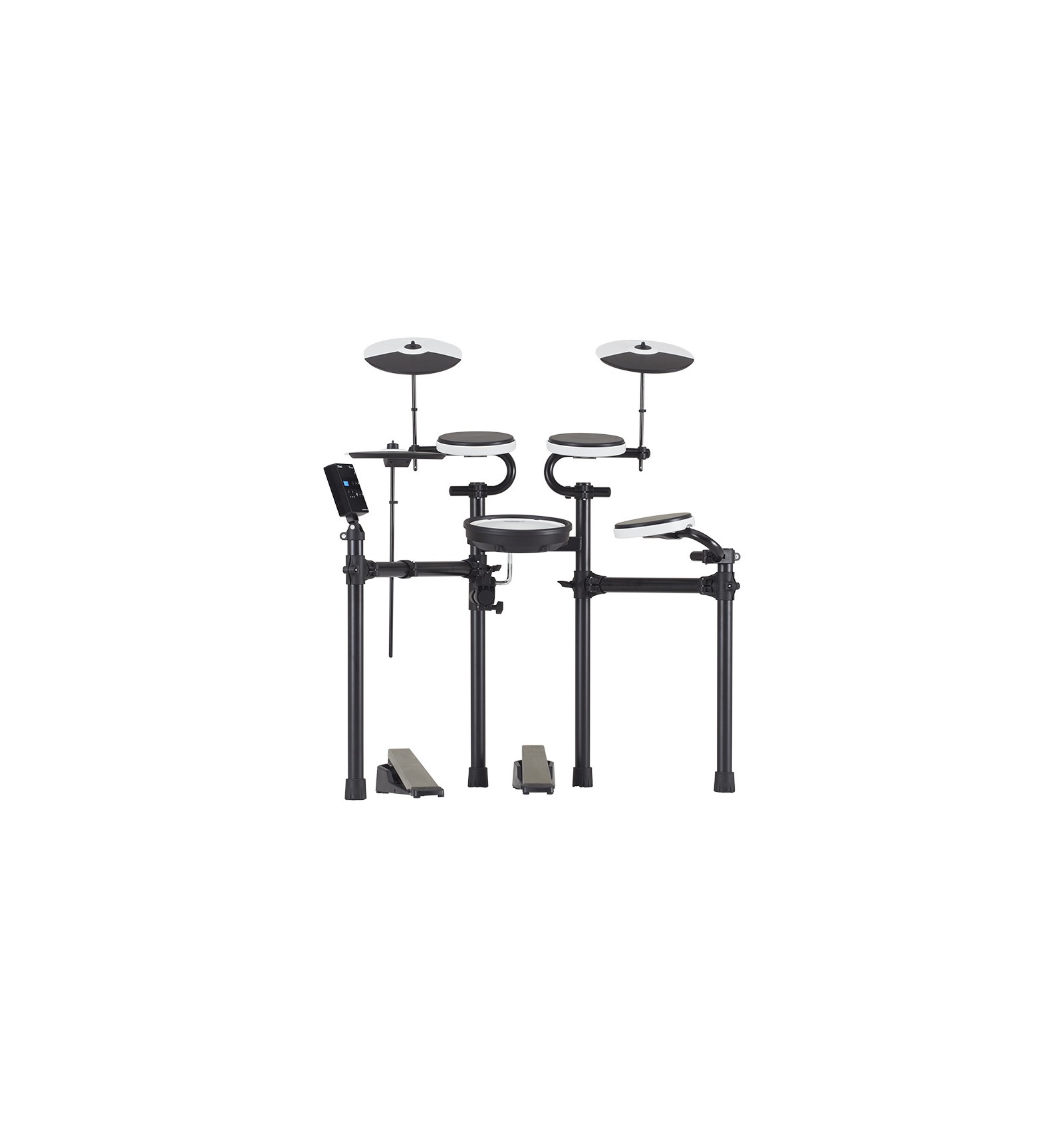 La serie TD-02 te ofrece la mejor experiencia básica de batería electrónica del mundo a un precio asequible. Respaldados por décadas de innovación de V-Drums, estos kits compactos y superexpresivos son mucho mejores que la suma de sus partes. Cada elemento se compagina para formar una completa base musical, desde los fantásticos sonidos y pads de respuesta ultrarrápida hasta las herramientas de ensayo integradas, la solidez del equipo y características prácticas para reducir el ruido al tocar en casa. Y con opciones de ampliación como la conectividad Bluetooth® para dispositivos móviles, pads sustituibles por modelos superiores y más, puedes ir expandiendo tu sistema con accesorios Roland genuinos a medida que evolucionen tus necesidades. La TD-02KV es el modelo superior de la serie e incluye un pad de caja con parche de malla con sensaciones de baqueta acústicas naturales y un resistente soporte de cuatro patas con una disposición ancha de estilo acústico. Además, el kit incluye tres pads de toms, un silencioso pedal de bombo sin maza y tres pads de platos (charles, crash y ride).