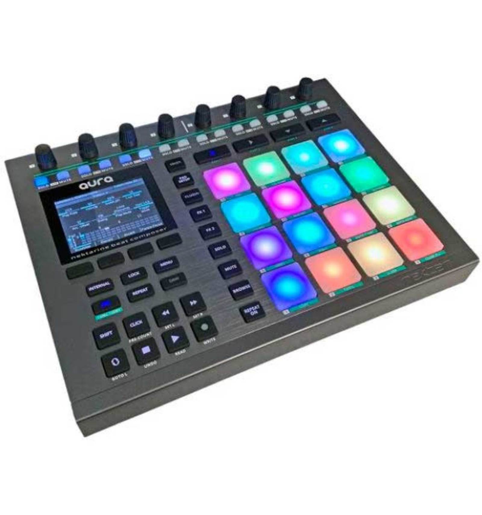 MODULO SECUENCIADOR-ARRANGER HARDWARE:⢠16 pads sensibles a la presión y la velocidad iluminados en colores RGB ⢠8 potenciómetros de buen tacto (360 grados, sin fin) ⢠Pantalla a color TFT con 320 à 240 px que incluye 4 botones suaves ⢠16 botones LED RGB ⢠8 botones Nektarine para acceso directo a patches, mezclador, configuración de pad, plugins y mucho más ⢠6 botones de modo ⢠7 botones de transporte con iluminación LED ⢠Potenciómetros, interruptores y pads totalmente programables por MID ⢠16 preajustes para almacenar todos los ajustes de mapeo internos (no se requieren cuando se usa Nektarine) ⢠Carcasa resistente con tapa de aluminio