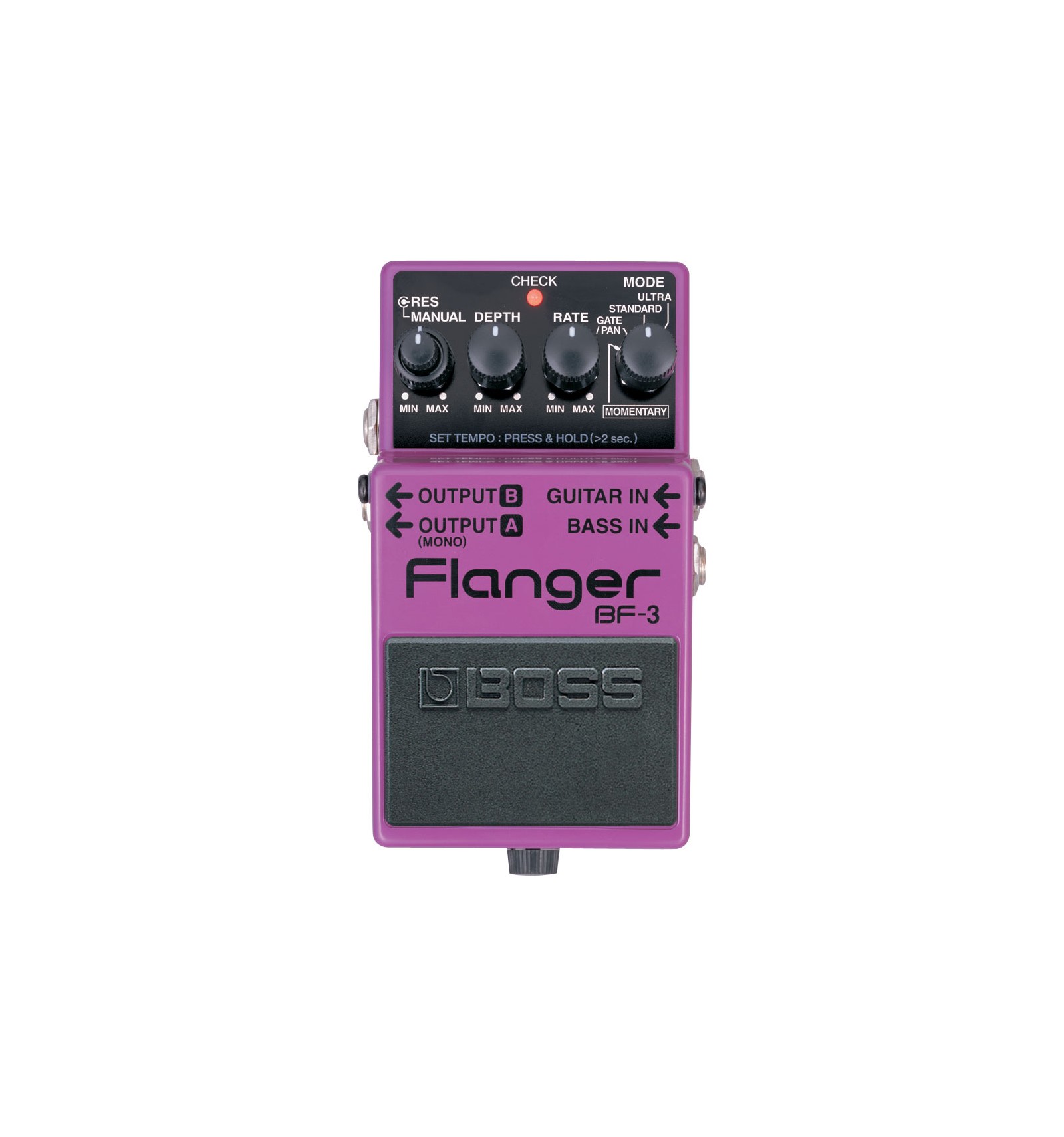 El BF-3 es un pedal compacto que produce los sonidos de flanger estéreo más gruesos de la historia de los pedales BOSS, y en el modo Ultra produce los sonidos de flanger más profundos de siempre, mientras que Gate/Pan crea un flanging espacioso con un fantástico efecto Slicer, que parece crear un "remolino" alrededor del oyente.