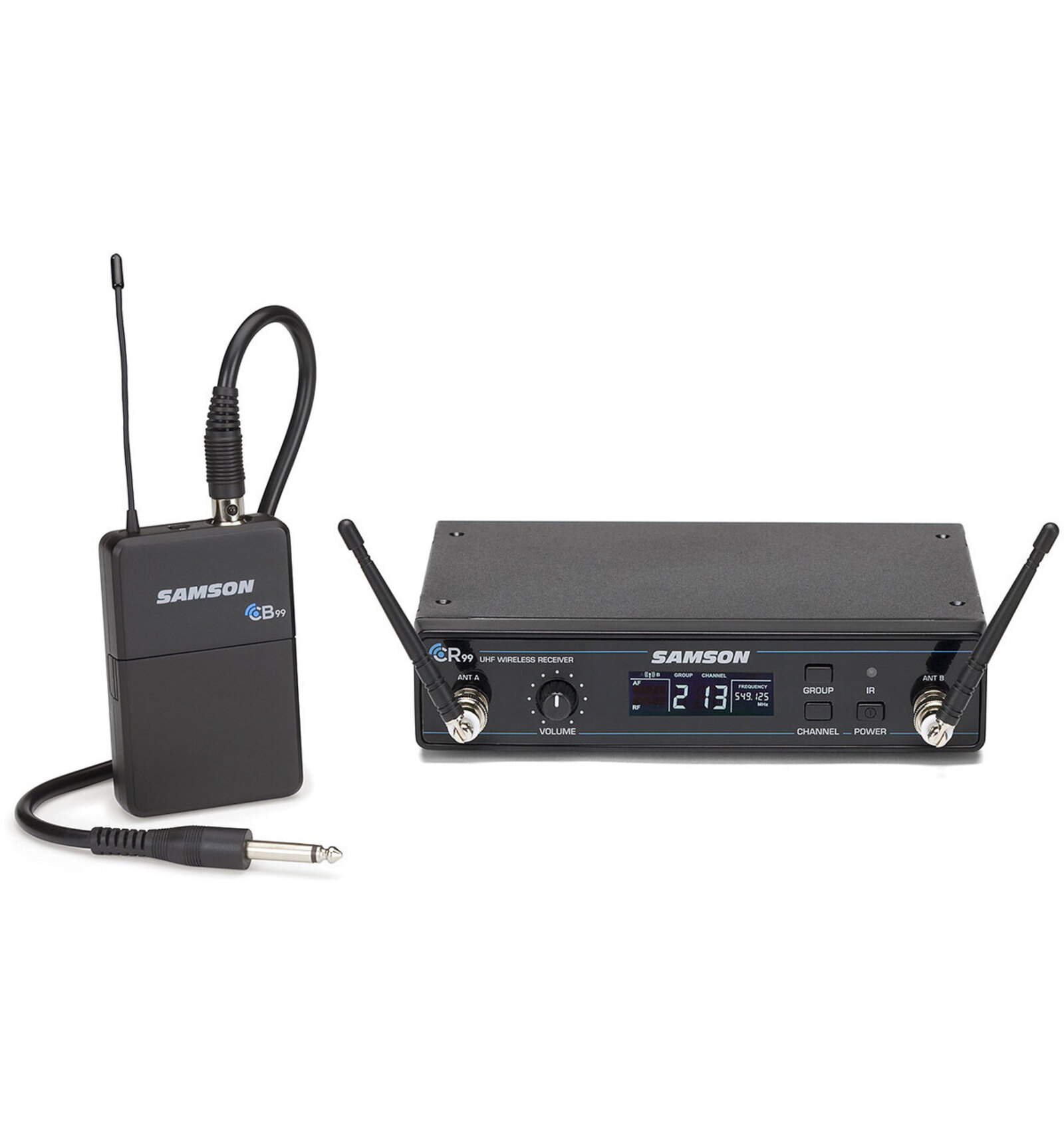 SISTEMA WIRELESS: GUITARRA Y BAJO Conjunto compuesto por receptor Diversity y petaca con cable para guitarra/bajo. Analizador de RF ynivel. Modo Scan busca los canales óptimos sin interferencias de entre los 80 posibles. Tono pilotoSquelch / Auto Mute para eliminar ruido RF. Pantalla LCD retroiluminada. Alcance: 90m. Hasta 8 sistemas simultáneos en regiones sin interferencias. Autonomía aprox. 8h. 2x Baterías AA. Accesorios para enracar incluidos.