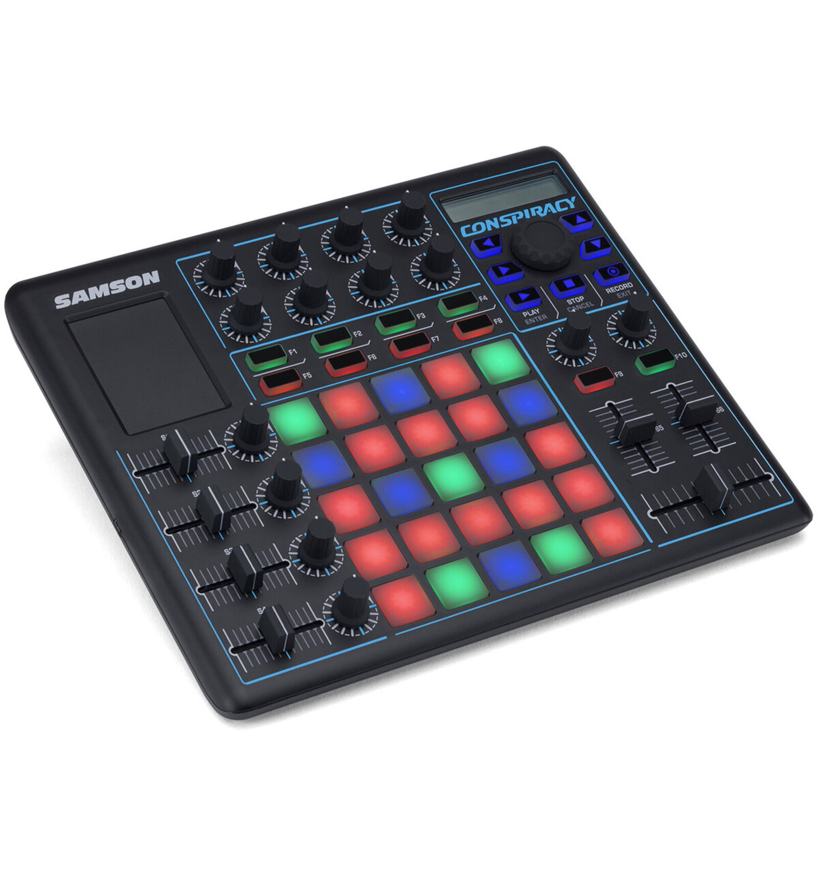 Los pads sensitivos con aftertouch para secuenciar melodÃas y ritmos, además de poder disparar clips, loops y samples en directos. Los pads disponen de retroiluminación en 3 colores que mejora la la comprensión y permite depender menos de la pantalla del ordenador. Más control con los 14 encoders, 10 botones de función retroiluminados y 6 faders. Todos ellos asignables mediante una pantalla LCD retroliluminada, un master encoder y 4 botones de navegación. Desde aquà se puede programar el tipo (Note/CC#), modo (Momentary/Toggle)y el número de canal MIDI de los pads, encoders, faders y botones. El touch pad está especialmente pensado para manipular efectos o transiciones. Además tiene una sección de mezclas de 2 canales paraDJ con crossfader. El ConspiracyEn JAM Instrumentos Musicales S.L.L. utilizamos únicamente cookies propias que permiten al usuario la navegación a través de la página web (técnicas). Al resultar imprescindibles consideraremos que acepta su uso. Puede obtener más información, o bien conocer cómo cambiar la configuración, en nuestra Política de cookies.